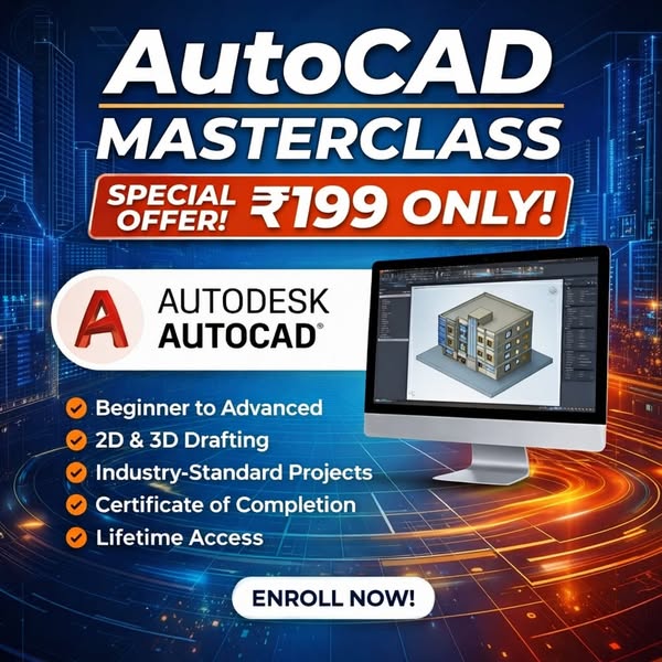 The AutoCAD Course by Goblaze teaches you how to use AutoCAD CAD software to create professional 2D and basic 3D technical drawings for architecture, engineering, and design projects. Youβll learn the interface, essential drawing and editing tools, layers, annotations, layouts, and practical project workflows β helping you gain practical drafting skills used in real-world design and drafting work.